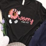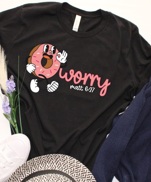 🍩 Donut worry, be happy! Introducing our hilarious “Donut Worry” t-shirt, inspired by Matthew 6:27.