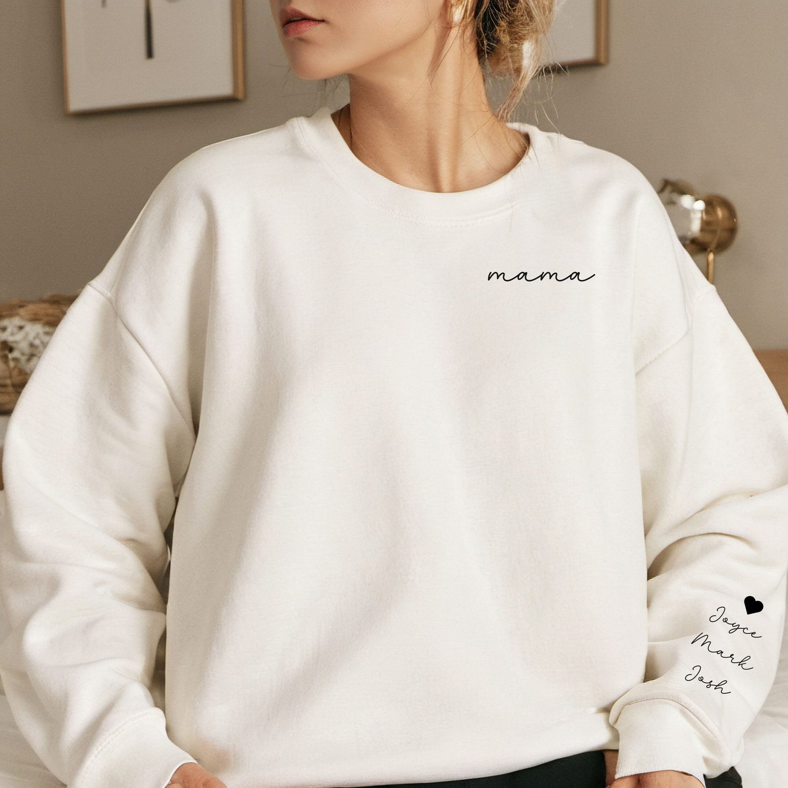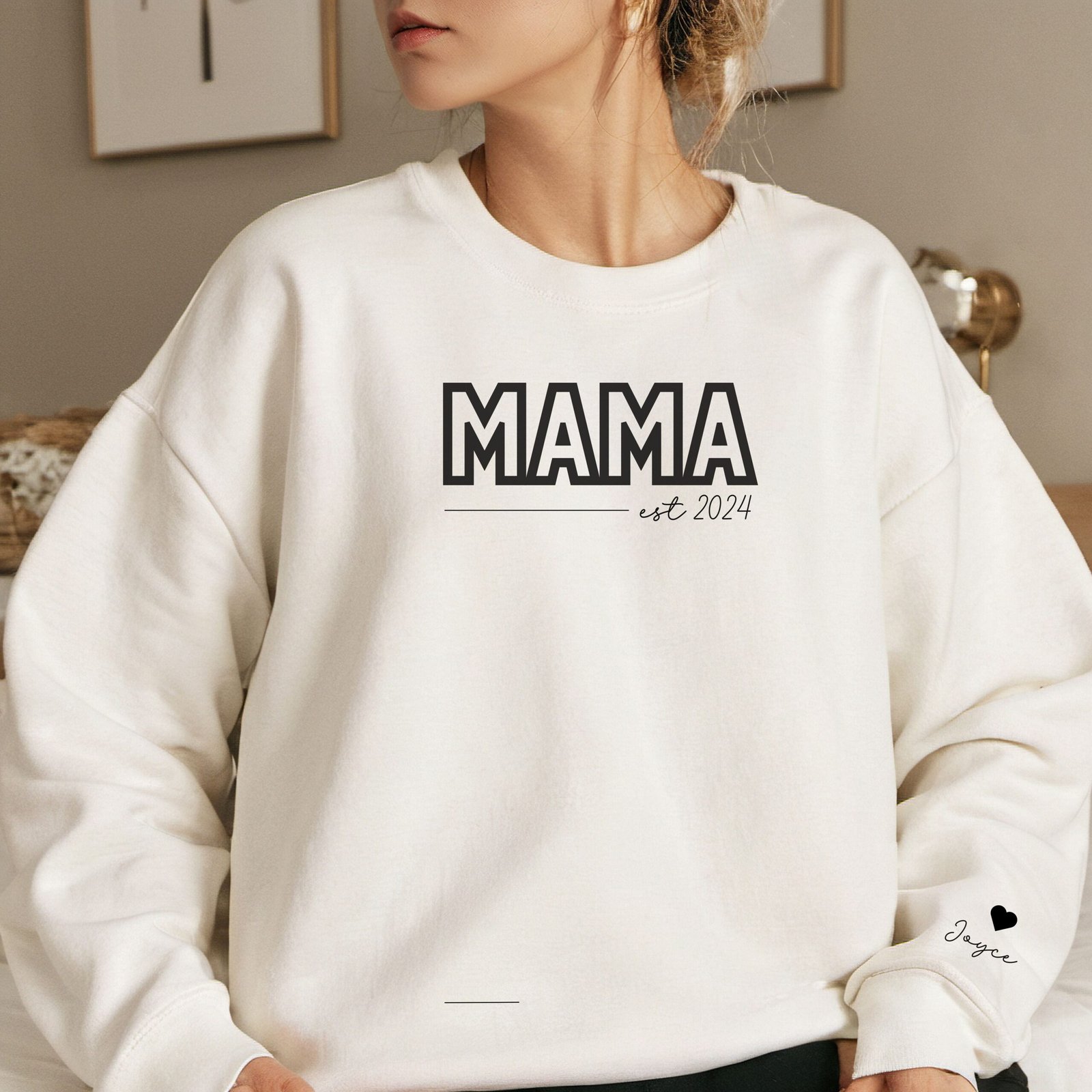 Embrace your unique journey by personalizing this cozy sweatshirt with the endearing title “Mama” and the names or initials of your little ones. Our skilled artisans will craft each detail with precision, ensuring a one-of-a-kind piece that celebrates your individual motherhood story.