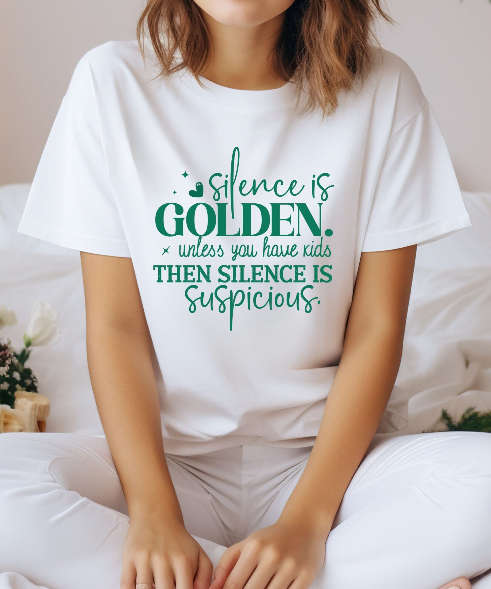 🤫 “Silence is golden… until you have kids!” Introducing our hilarious mama t-shirt that perfectly captures the chaotic joy of motherhood!